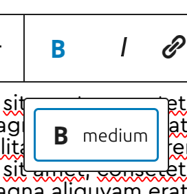 The «B» icon, which originally only bolded the selected text, now offers a selection of font weights, depending on the portal and the selected font.